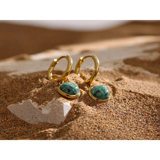 Stainless Steel Green Natural Stone Hoop Earrings New Golden Metal Jewelry