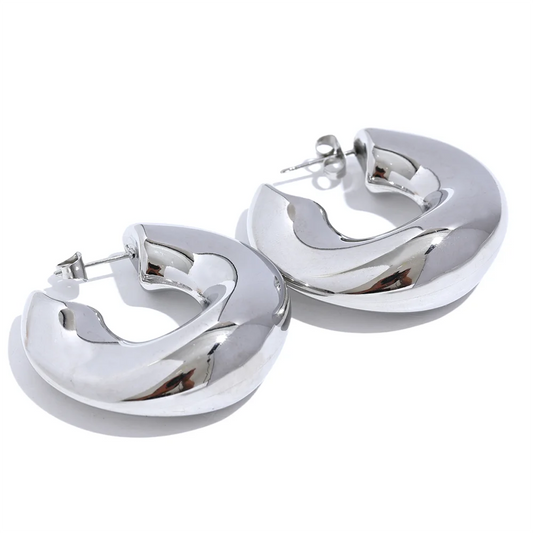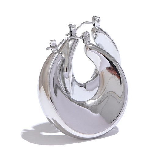 Stainless Steel Hollow Chunky Hoop Earrings Gold Silver Color Waterproof Jewelry for Women