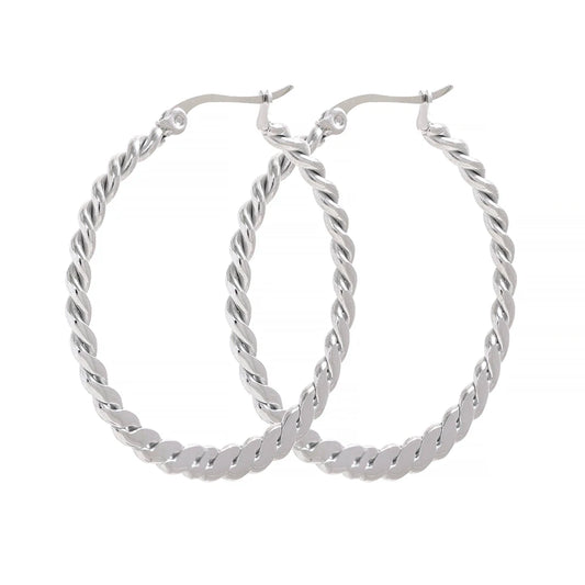 Stainless Steel Twist Golden Big Hoop Earrings Waterproof Metal Unique Trendy Jewelry