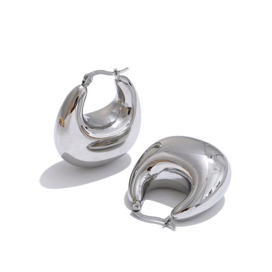 Glossy Stainless Steel C-Shape Waterproof Earrings Versatile everyday Attractive Jewelry