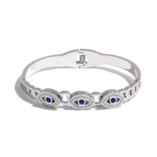 Evil Eye Zircon Bangle – 18K Gold Stainless Steel Waterproof