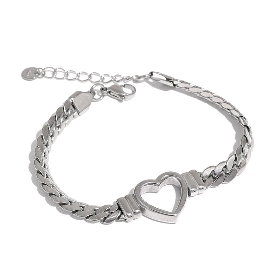 Heart Cuban Bracelet – Gold or Platinum Plated Stainless Steel