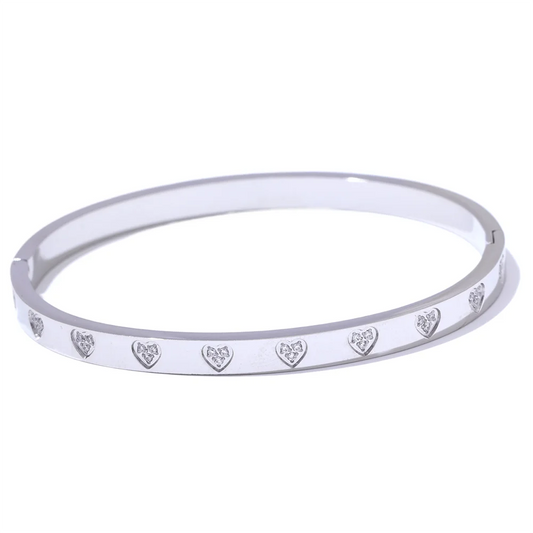 Heart Zirconia Bangle – Gold Plated Stainless Steel Bracelet