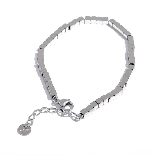 Polished Square Bead Bracelet – Handmade Gold Plated Stainless Steel