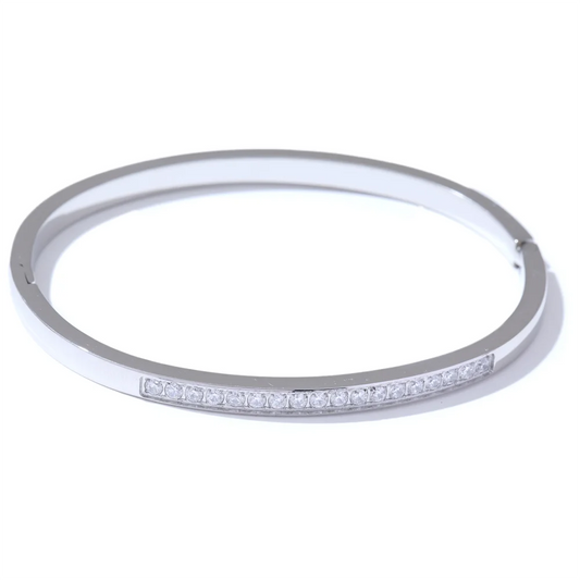 Cubic Zirconia Bangle – 60mm Gold-Plated Stainless Steel Daily Bracelet
