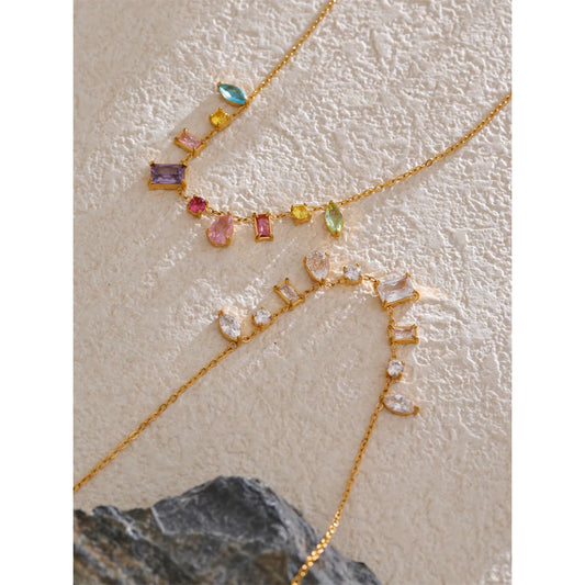 Colorful Cubic Zirconia Pendant Necklace Trendy Stainless Steel High Quality Jewelry