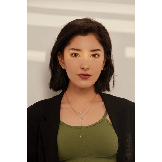 Elegant Double Layer Fishtail Necklace with Zircon Pendant – Gold Plated