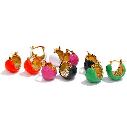 Colorful Enamel Orange Green Summer Earrings Stainless Steel Multiple Color Waterproof Jewelry