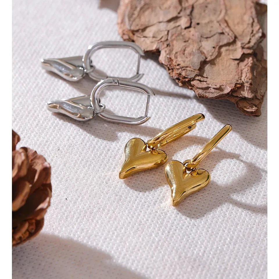 316L Stainless Steel Heart Love Drop Hoop Earrings Water Resistant Sleek Stainless Metal Popular Jewelry