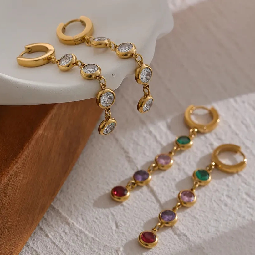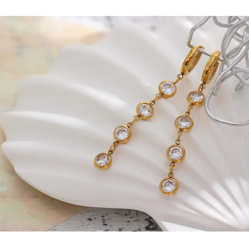 316L Stainless Steel Jewelry Stylish Cubic Zirconia Long Earrings High Quality Metal Geometric Earrings