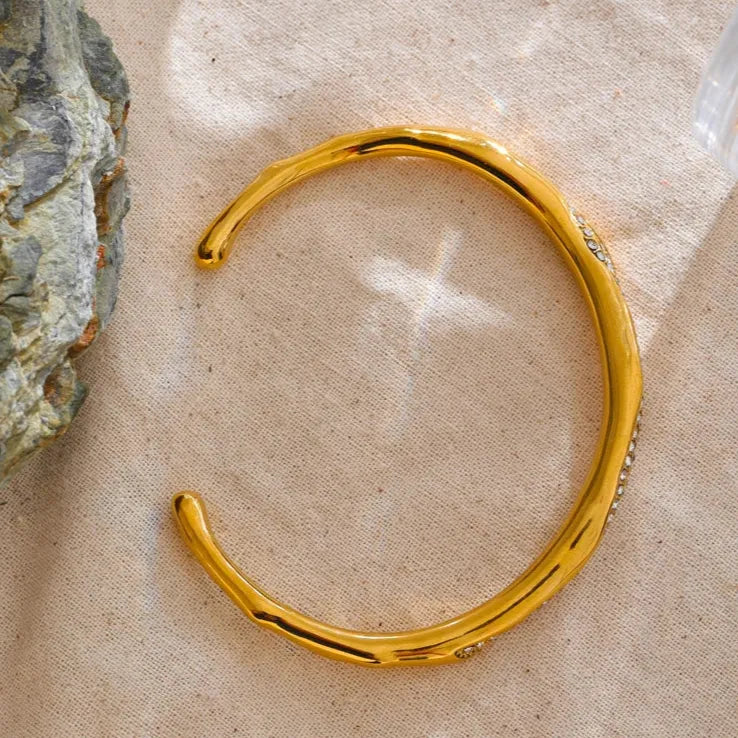 62mm CZ Open Cuff Bracelet – 18K Real Gold Plated Stainless Steel Waterproof Bracaelet