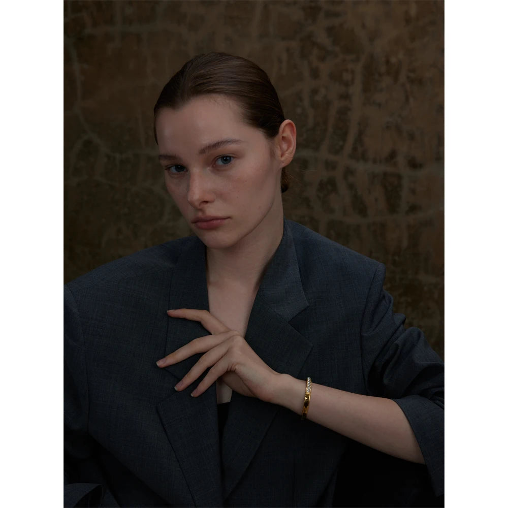 Shiny CZ Open Cuff Bracelet – 18K Gold Plated Stainless Steel