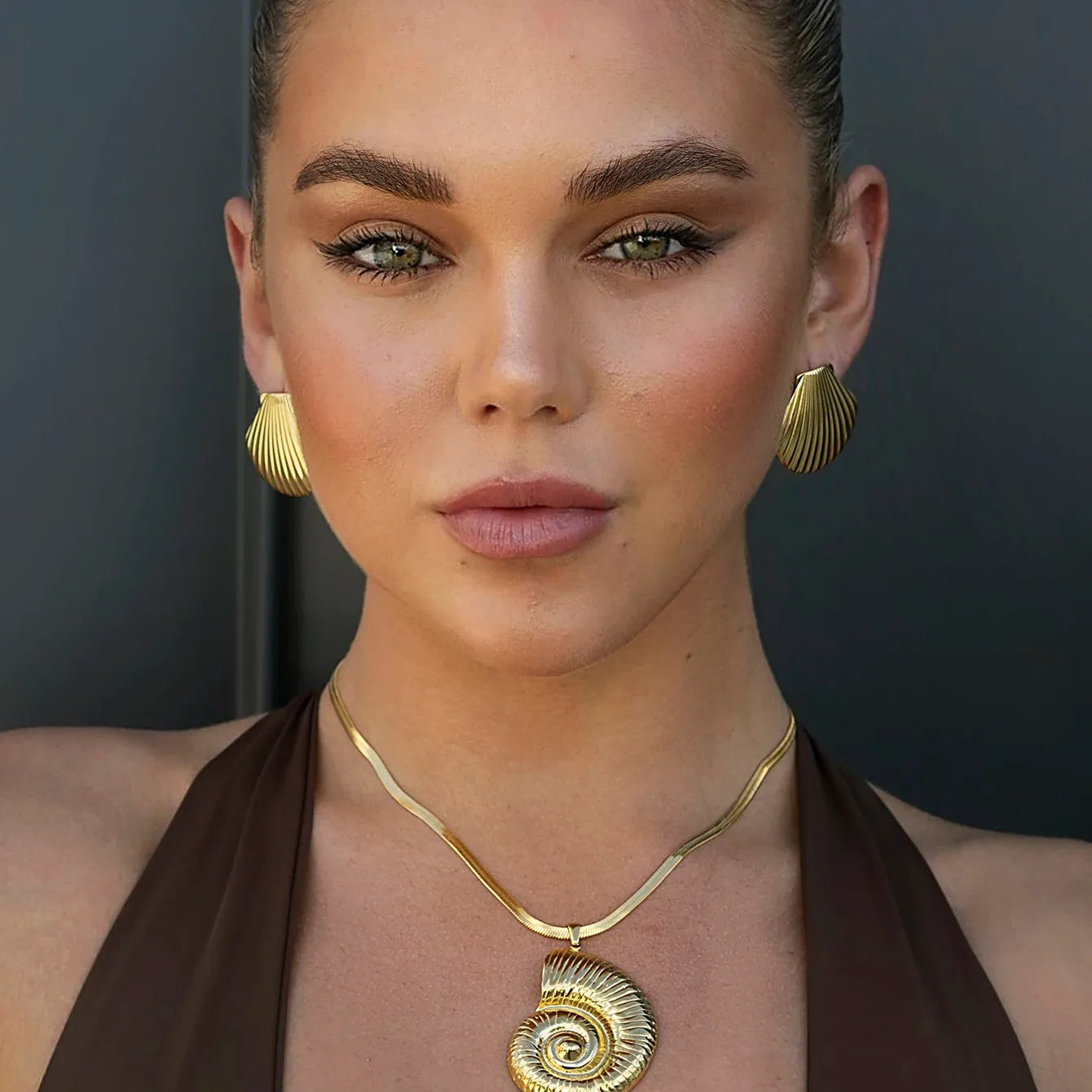 Make a powerful statement with these big textured shell stud earrings, crafted from stainless steel and finished in rich 18K gold color plating. Their bold shape and luxurious finish offer a distinctive look that’s both waterproof and timeless—ideal for standout everyday or occasion wear.