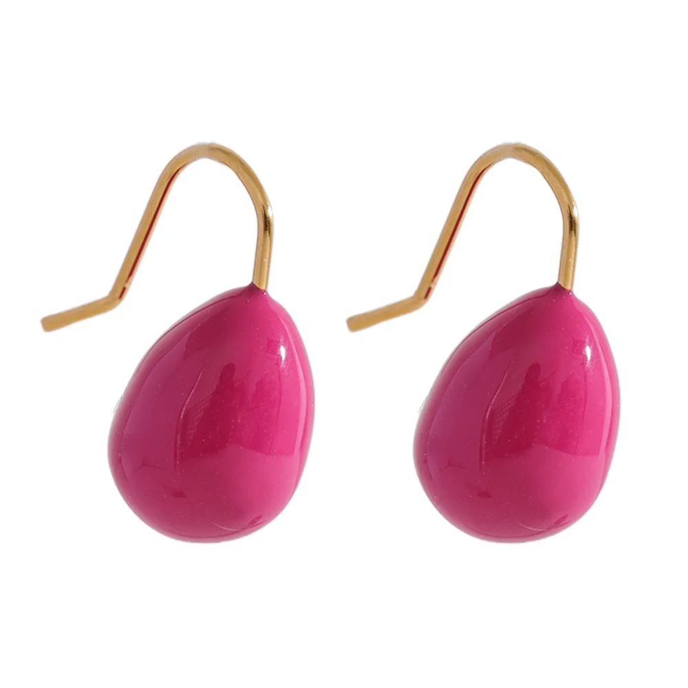 Colorful Enamel Orange Green Summer Earrings Stainless Steel Multiple Color Waterproof Jewelry