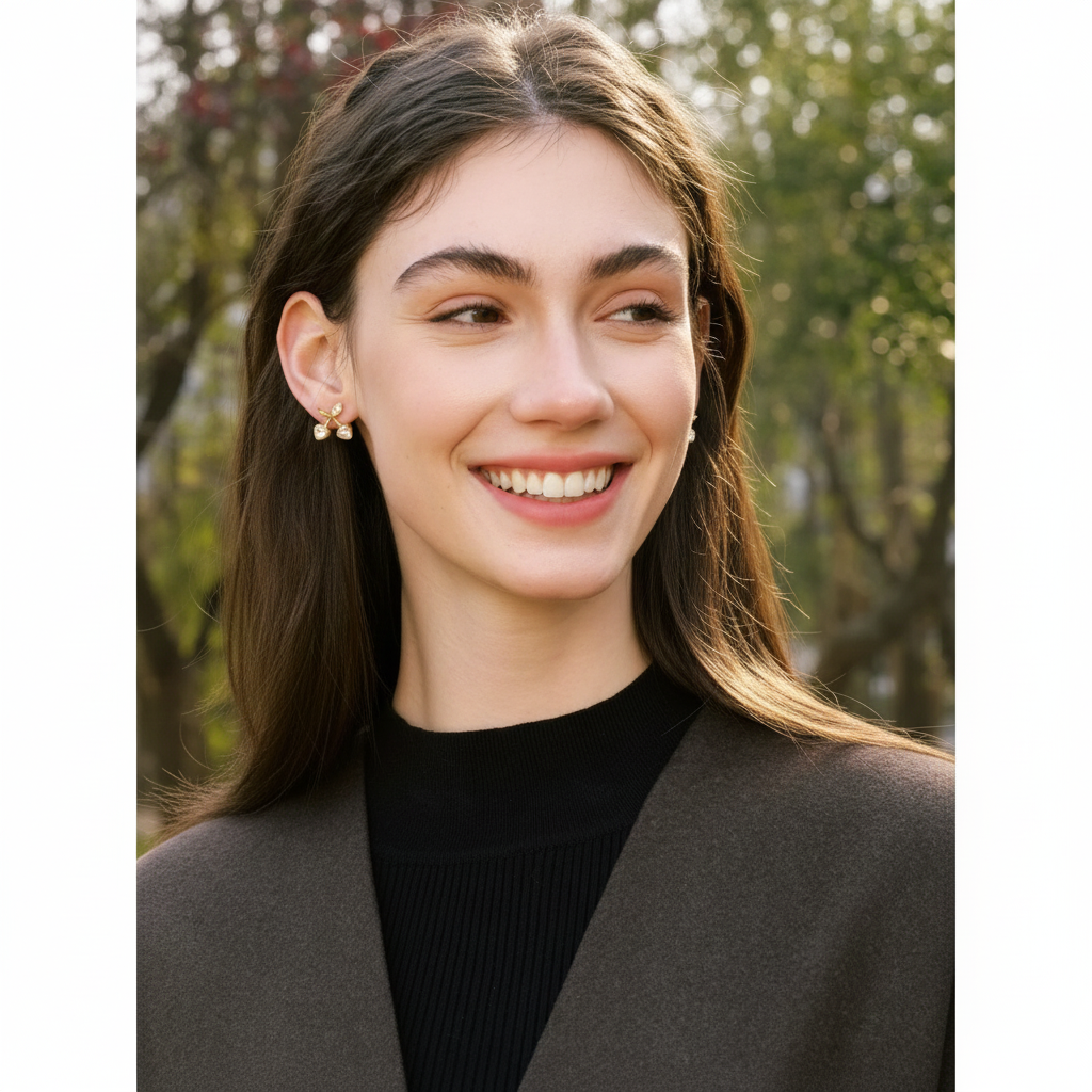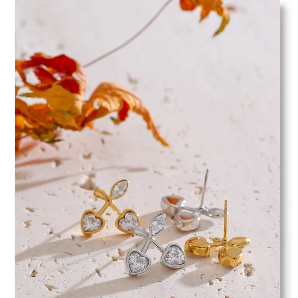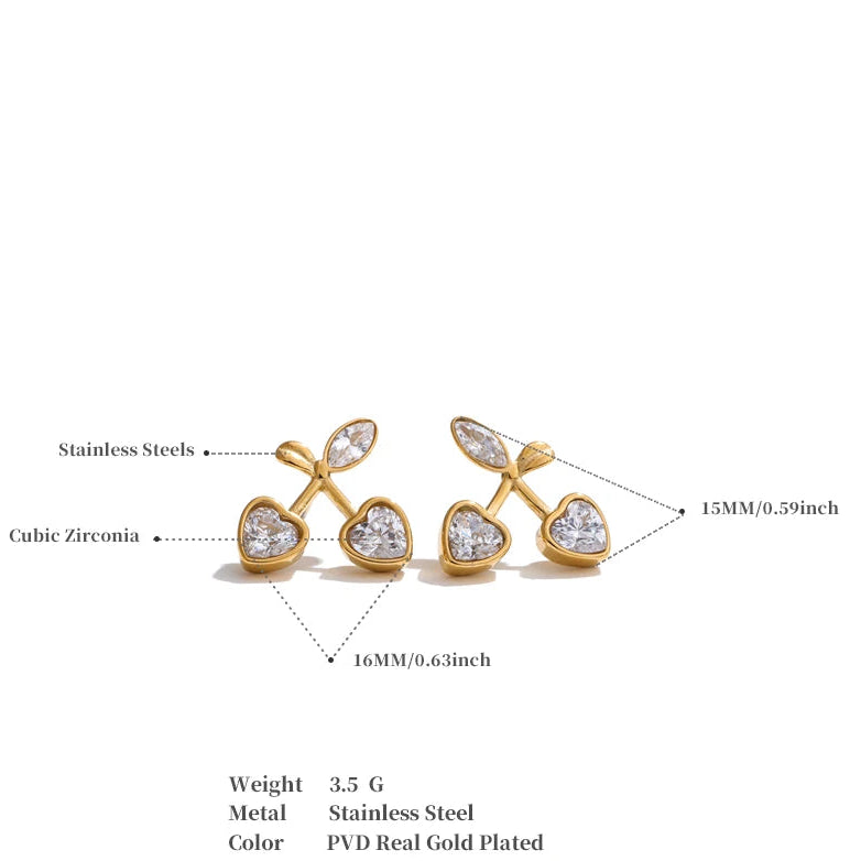 Cute Shiny Cherry Stud Earrings Waterproof Chic Daily Jewelry for Women Stainless Steel PVD Plated Trendy Accessory