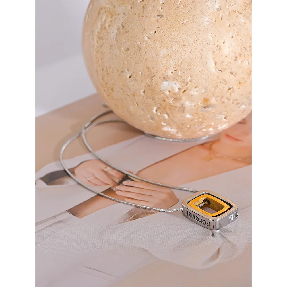 Double Layered Square Pendant Necklace – Gold 316L Stainless Steel