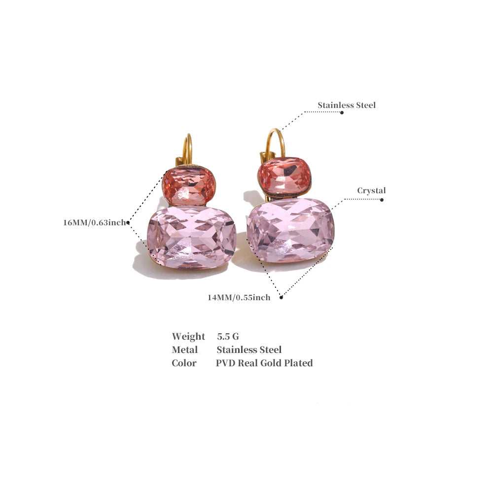 Crystal Stud Earrings French Hoops Trendy White Green Pink Jewelry for Women 18k PVD Plated