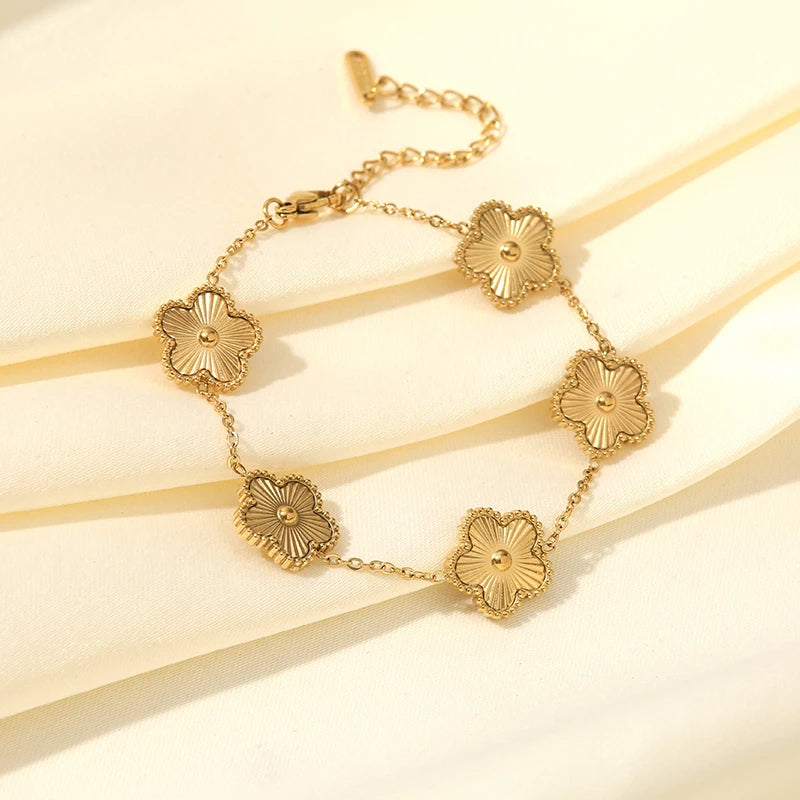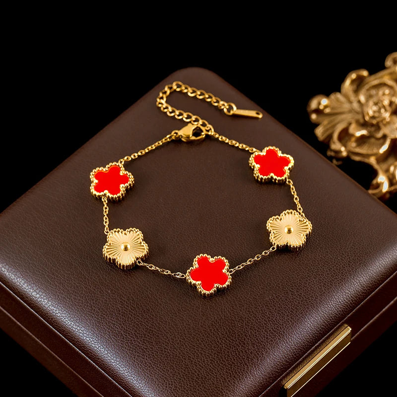Add a pop of charm and luck to your look with this Double-Sided Green Five-Leaf Flower Bracelet, crafted from durable 316L stainless steel. Featuring a beautifully enameled five-leaf clover charm visible from both sides, this bracelet brings timeless elegance and modern flair. The lobster claw clasp ensures secure wear, while its waterproof and hypoallergenic design makes it perfect for daily style or special occasions.