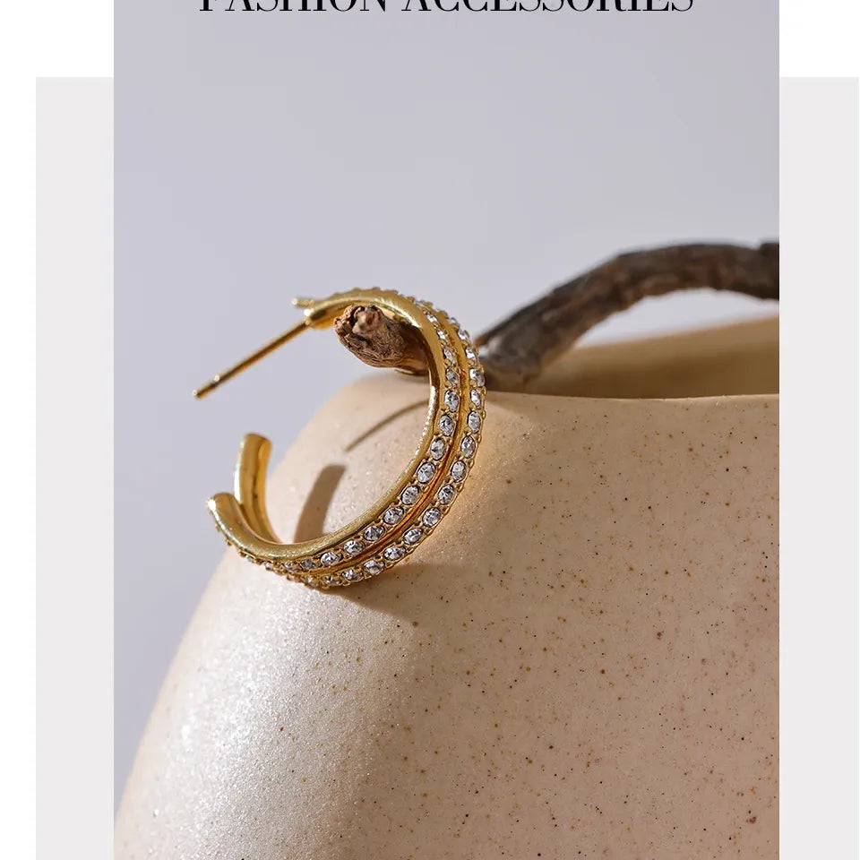 High Quality Shiny Inlaid Cubic Zirconia Stainless Steel Fashion Earrings Waterproof Jewelry