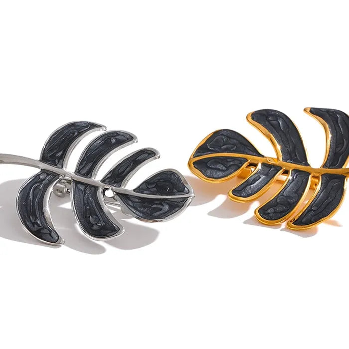 Leafy Enamel Brooch – 18K Gold-Plated Stainless Steel Pin with Pearl