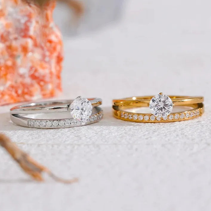 The Luxe Jewels Cubic Zirconia Double Classic Ring is a romantic and timeless piece of jewelry that blends elegance with durability. Crafted from high-quality stainless steel, this ring features both platinum and real gold PVD plating for a stunning, tarnish-free finish. Inlaid with sparkling cubic zirconia stones, it offers a brilliant shine that lasts through daily wear. Designed with a prong setting, the zircon stones are securely placed for added durability. Waterproof and built to withstand everyday activities, this ring is perfect for adding a touch of sophistication to any outfit, whether casual or formal.