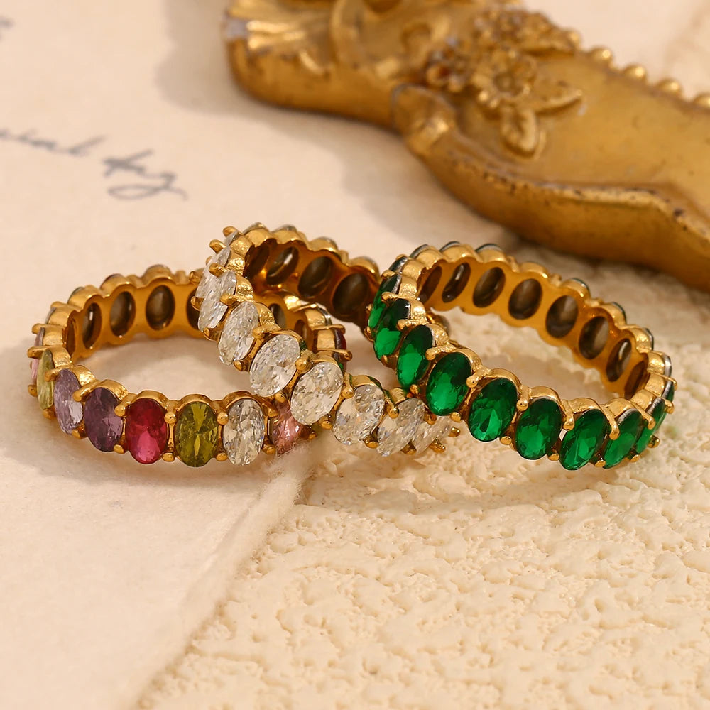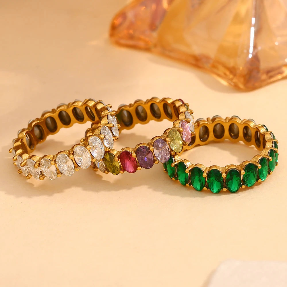 Luxe Jewels Zircon Oval Crystal Band Women’s Ring – 18K Gold Plated Tarnish-Free