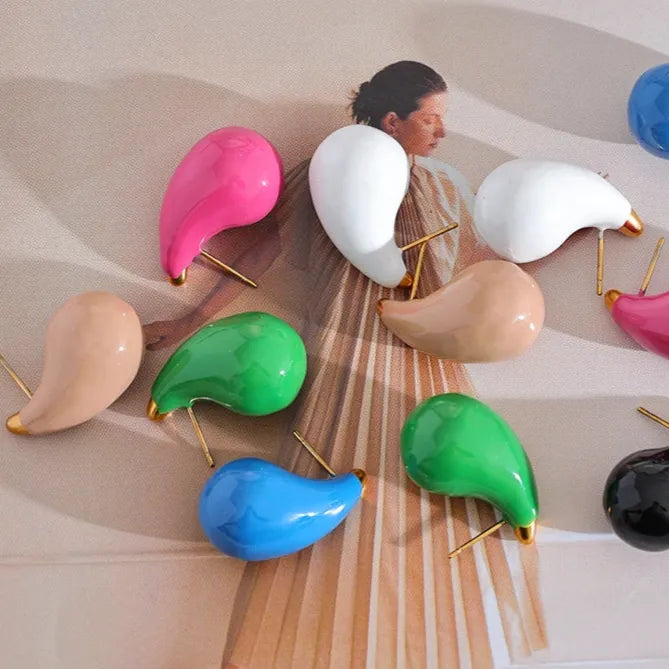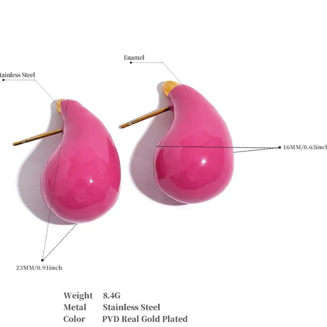 Step into vibrant style with these 16mm Colorful Enamel Water Drop Earrings. Made from PVD gold-plated stainless steel, these trendy studs feature a bold, glossy enamel finish in a smooth water drop shape. Waterproof and hypoallergenic, they add a playful yet elegant touch to any look—perfect for daily wear or statement fashion moments.