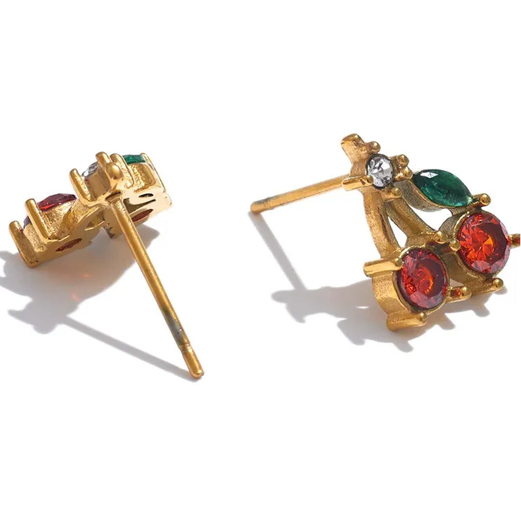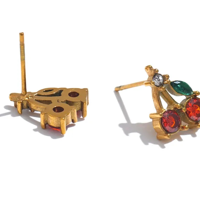 Make a statement with these sophisticated cherry stud earrings, showcasing vibrant red cubic zirconia gemstones set in premium stainless steel. Engineered for longevity, the waterproof design resists corrosion and moisture damage, ensuring your investment maintains its radiance season after season. The fruit-inspired motif adds a distinctive character that sets these pieces apart from conventional studs. Whether you're dressing for professional settings or casual outings, these earrings deliver refined sparkle without compromise. An excellent choice for those seeking jewellery that balances aesthetic appeal with practical performance and everyday wearability.