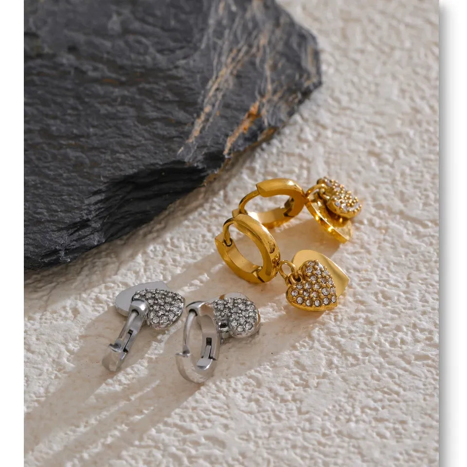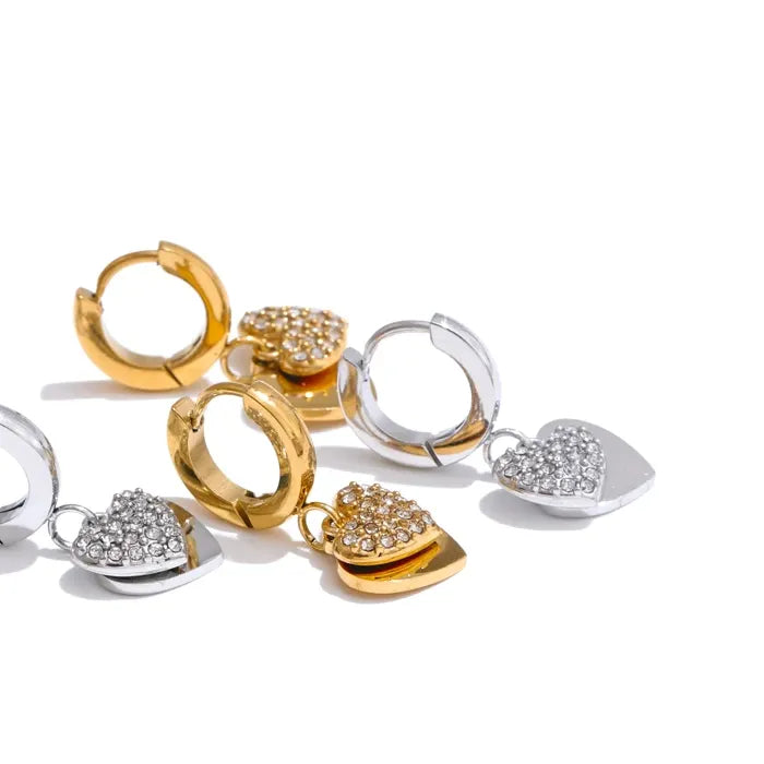 Elevate your jewellery collection with these exquisite 18K gold plated drop hoop earrings, crafted from premium stainless steel for lasting durability. Featuring a romantic double heart design adorned with brilliant cubic zirconia stones, these earrings deliver sophisticated sparkle with every movement. The hypoallergenic construction makes them ideal for sensitive skin, ensuring comfort throughout the day. Perfect for both everyday elegance and special occasions, these high-quality pieces combine timeless design with modern craftsmanship. A versatile addition to any jewellery wardrobe.