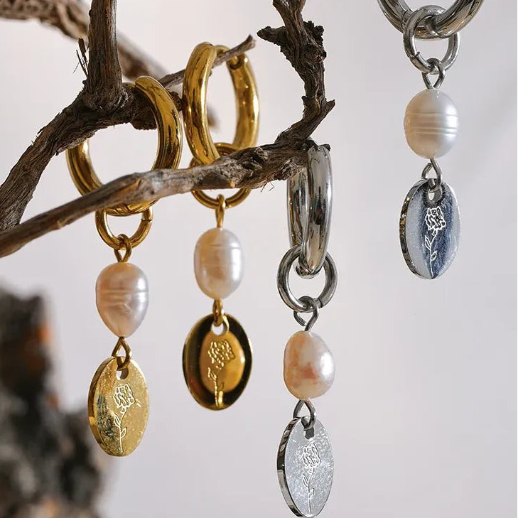 Elevate your jewellery collection with these exquisite handmade drop earrings, featuring lustrous natural pearls nestled within delicate flower charms. Crafted from premium stainless steel, they offer exceptional durability and resistance to tarnishing, making them ideal for everyday wear or special occasions. Available in both warm gold and cool silver finishes, these versatile pieces seamlessly complement any style. The thoughtful artisan construction ensures each pair captures refined elegance, while the lightweight design provides all-day comfort. Perfect for those seeking timeless sophistication with a contemporary edge.