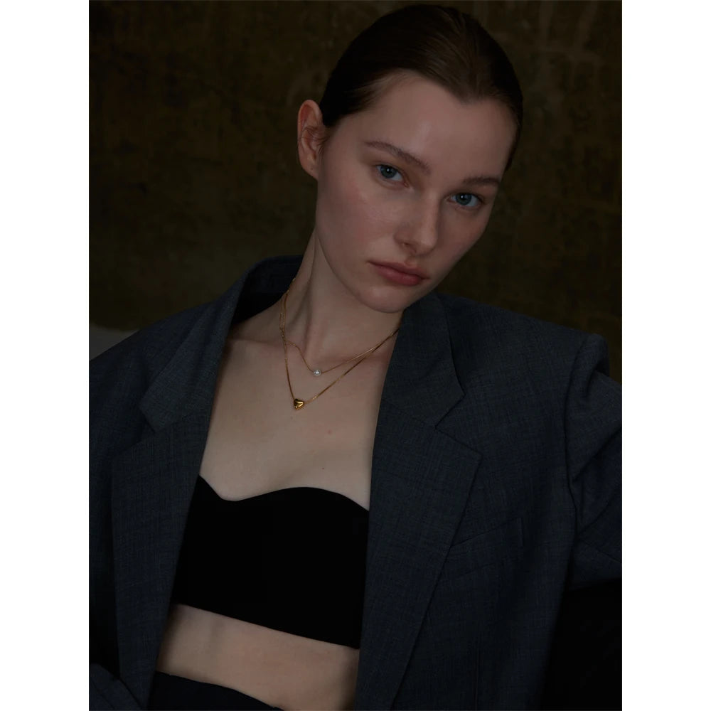 Elevate your look with this double-layer heart pendant necklace, featuring imitation pearls and a modern geometric charm. Crafted from rust-proof stainless steel with PVD real gold plating, this stylish stacking piece blends romantic design with everyday durability for a timeless fashion statement.
