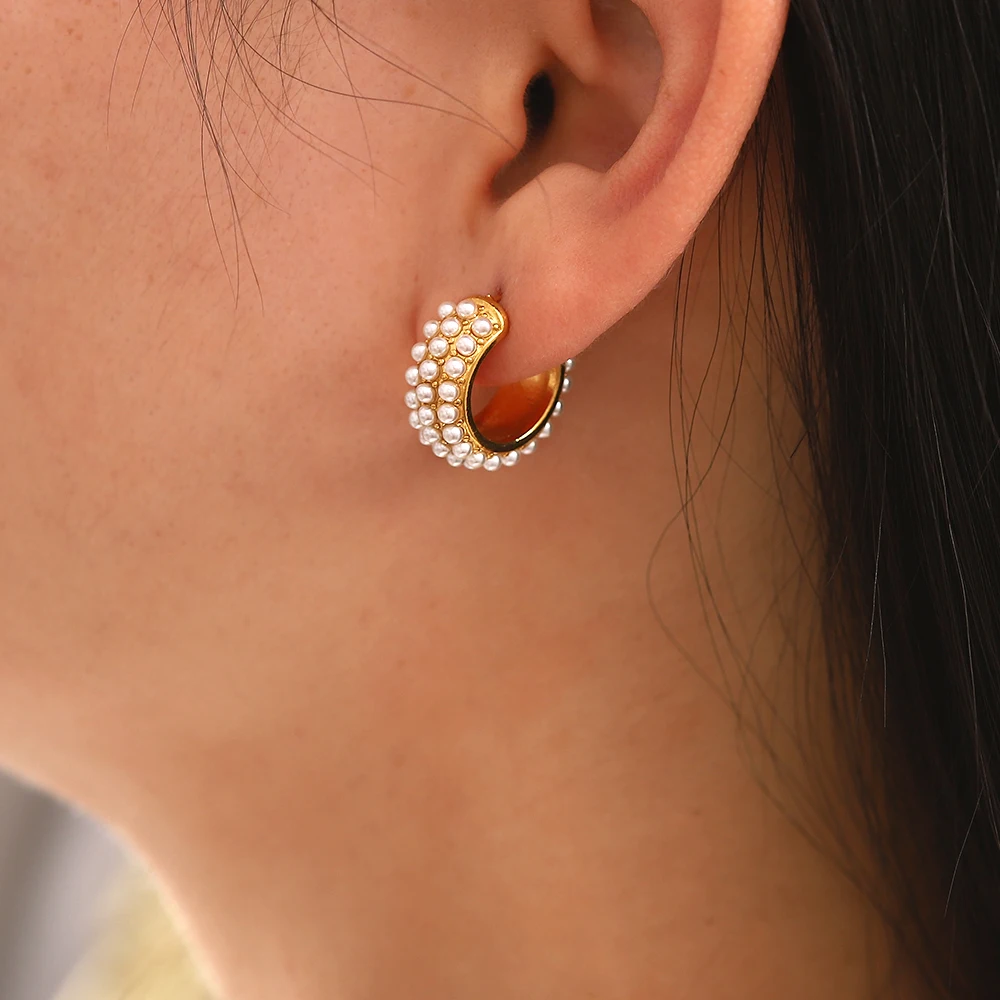 Uworld Exquisite Luxury Stainless Steel Pearls Beads Hoop Huggie Earrings Romantic Elegant Fashion Charm Trendy Chic Jewelry